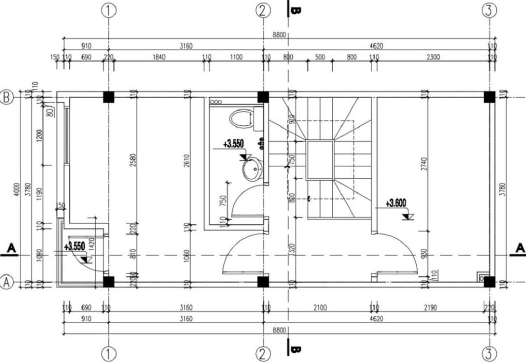 Kiến trúc: Thể hiện hình dáng bên ngoài, bố cục các phòng, cửa sổ, cửa ra vào,…