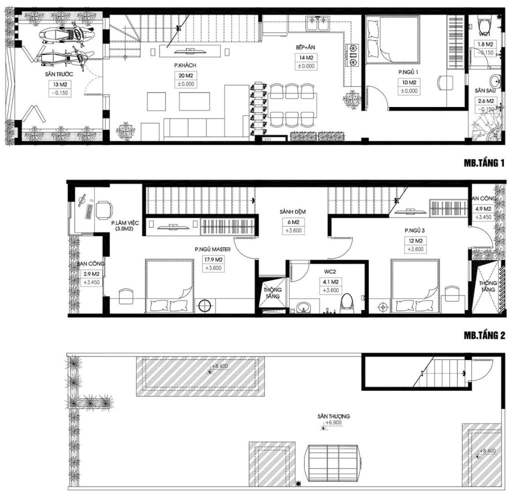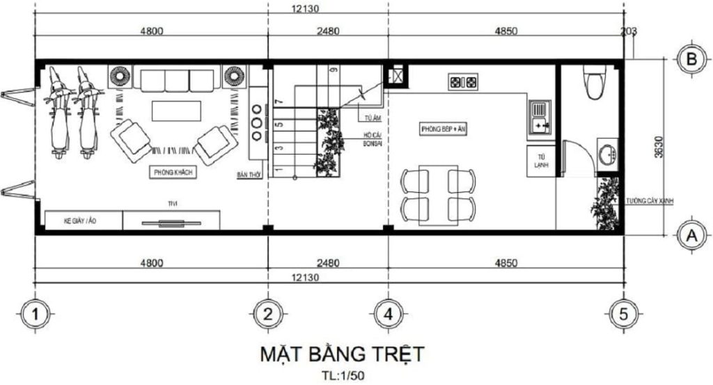 Bản vẽ nhà diện tích 5×20 2 tầng có mặt tiền