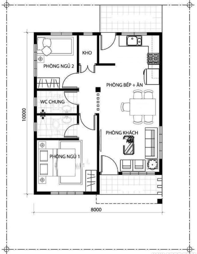 Với diện tích khiêm tốn 50m2, bản thiết kế này đã khai thác tối đa mọi không gian, tạo nên một ngôi nhà hiện đại, tiện nghi. Phân chia rõ ràng giữa phòng bếp và phòng khách không chỉ đáp ứng nhu cầu sử dụng mà còn mang đến sự thông thoáng, gọn gàng cho cả ngôi nhà.